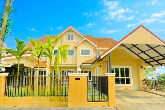 NamPhrae SanPaTong For rent 6bed 4bath detached house near WatSala 650m. HangDong Golf Club large home 105sq.wa. 310sq.m. corner plot 44,998B-M private in luxury project quiet atmosphere never flooded ideal for living good location Hang Dong Nam Phrae near Panyaden International School 1 km. easy access main roads