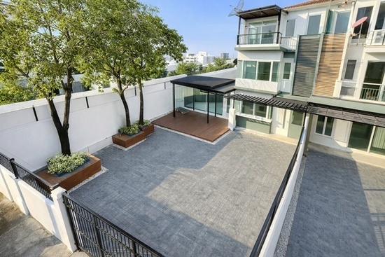 พื้นที่ภายนอกจัดสวน พร้อมมุมพักผ่อนด้านข้างและหลังบ้าน