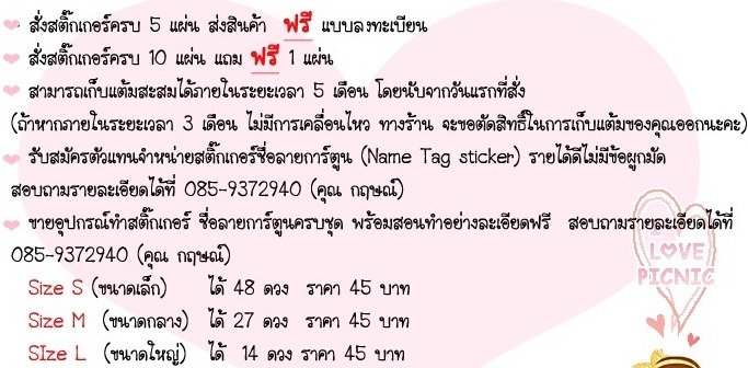 - สั่งสติกเกอร์ครบ 10 แผ่น รับ " ฟรี " อีก 1 แผ่น