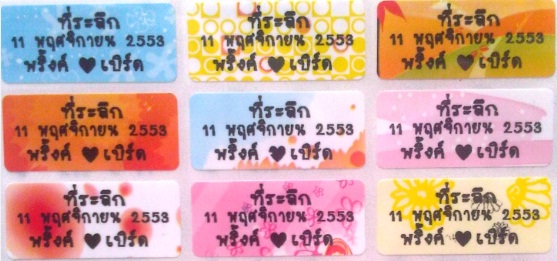 รับสั่งทำชื่อ หรือข้อความเก๋ๆ สติกเกอร์ติดของชำร่วยเก๋ๆไม่ซ้ำใคร