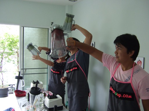 + คุณได้ลงมือปฏิบัติจริงทุกขั้นตอน ไม่ว่าจะเป็นขั้นพื้นฐาน เช่นการเลือกซื้อผลไม้ การหั่น การปอก การบีบ การคั้น ไปจนถึงขึ้น การผสม ปรุง แต่ง ให้ได้รสชาติที่อร่อยไม่ซ้ำใคร และได้ทดลองปั่นด้วยเครื่องปั่นอย่างดีความเร็วสูงขนาด 1200 วัตต์ (ราคาตัวละหมื่นกว่าบาท) เปรียบเทียบกับเครื่องปั่นแบบทั่ว ๆ ไป เรามีเครื่องปั่นหลายประเภท หลายราคา ให้คุณได้ทดลองปั่น ว่าชอบแบบไหน ให้เหมาะกับงบประมาณในการลงทุน