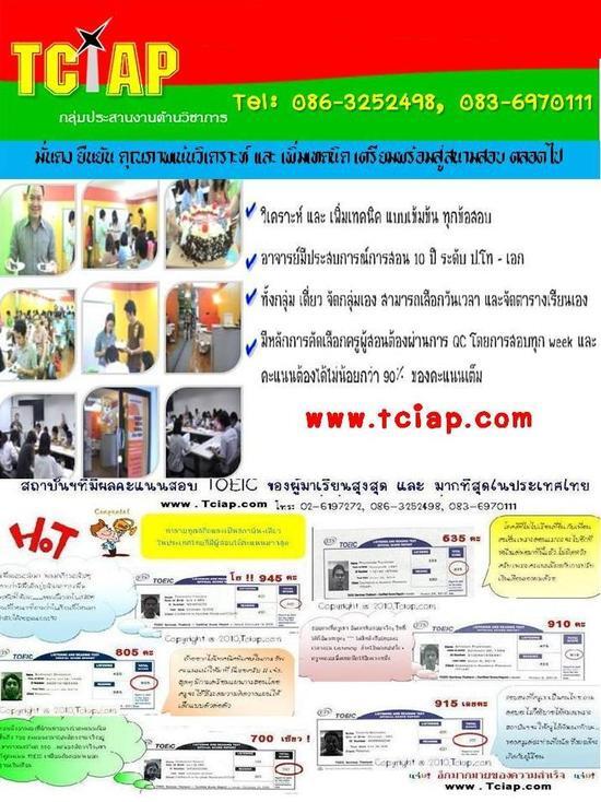 มีผลคะแนนสอบ TOEIC มากที่สุดในประเทศไทย สอนโดยครูผู้ชำนาญด้าน TOEIC มากกว่า 10 ปีเรามั่นใจใรคุณภาพการจัดองค์ความรู้ ซึ่งเน้นวัตถุประสงค์เพื่อการเตรียมสอบ ((โทอิค)) อย่าแท้จริง พร้อมทัง Text book อ้างอิงมากกว่า 100 เล่ม สถาบันฯที่มีผลคะแนนสอบ TOEIC มากที่สุดในประเทศไทย สอนโดยครูผู้ชำนาญด้าน TOEIC มากกว่า 11 ปี