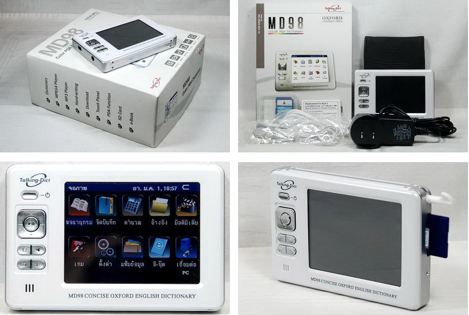 Talking-Dict Color PDA MD98 เรียนรู้ภาษาอย่างง่ายดายกับพจนานุกรม 13 ภาษา Oxford 13 in 1 อุปกรณ์ ตัวเครื่อง+li-ion batt ac adaptor+sd2gb+usb cable+stylus+หูฟัง+ซองหนัง+คู่มือ ใหม่มีกล่อง ราคา 4,500 บาท (no.8766) มีสินค้าไอทีให้เลือกอีกหลายรุ่นหลายแบรนด์
