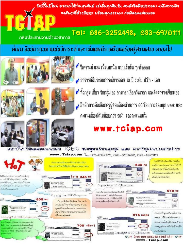 มาแล้ว !! อัพเดท TOEIC TEST สอนโดยครูผู้ชำนาญด้าน TOEIC มากกว่า 11 ปี (แห่งแรกและแห่งเดียวที่ส่งสอบ FREE !! ) ครูมีคุณภาพระดับ โท-เอก ทั้งในและต่างประเทศ ผ่านการสอบ TOEIC ทุก week เรียนอย่างมีเทคนิค และ ถูกต้อง