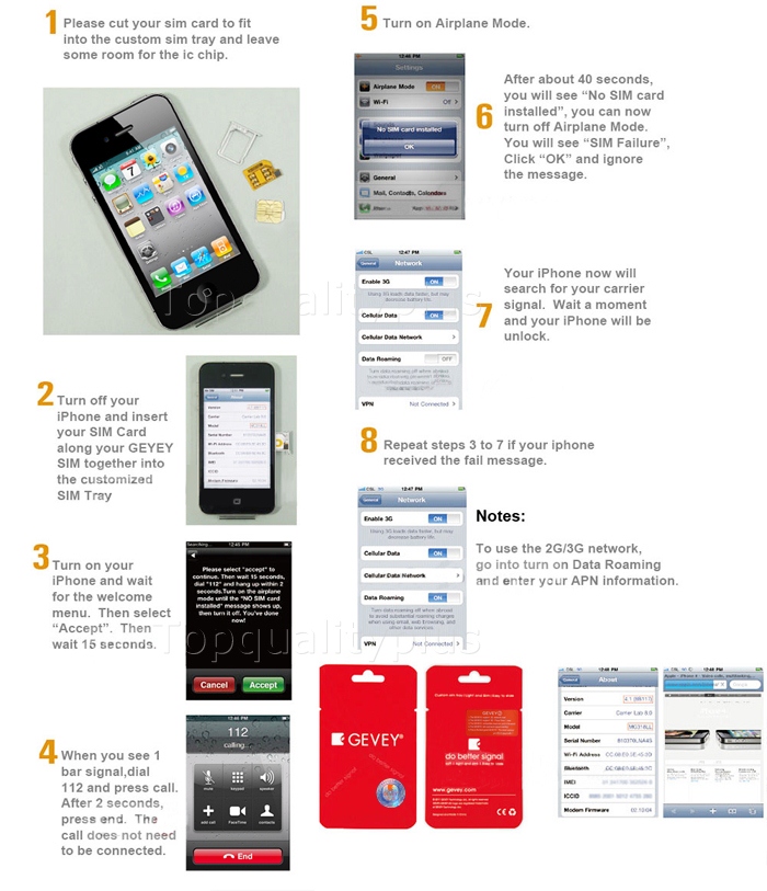 - fully unlock: 2G/3G GPRS/EDGE/3G STK iTunes