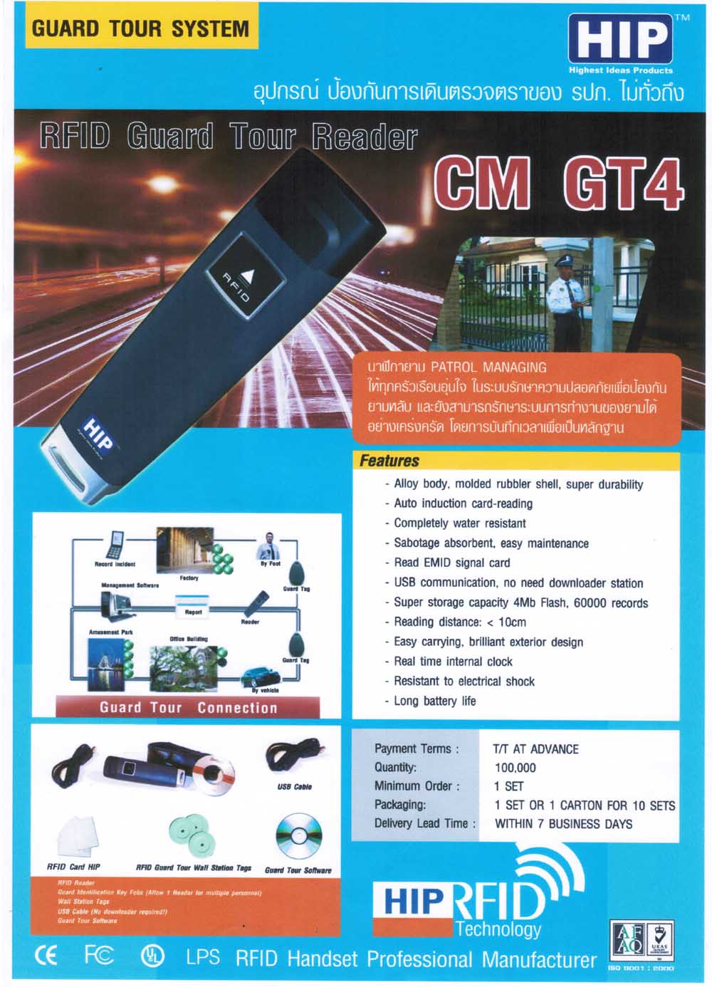 ชุดควบคุมการตรวจการ รปภ. RFID Guard Tour, Gard Scan, Guard Tour System(GTS), นาฬิกายาม GT4