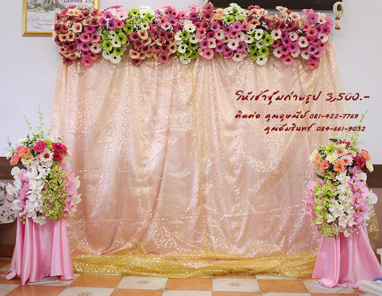 เรามีซุ้มดอกไม้ให้เช่าทั้ง set ราคา 3,500 บาท จัดดอกไม้ให้พร้อม