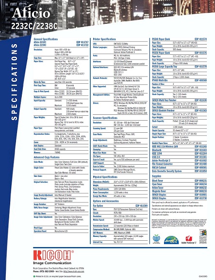 ปรับราคาแล้ว!!ขายเครื่องถ่ายเอกสาร Ricoh Aficio 2232C สี/ขาวดำ Full Function สภาพดี บำรุงรักษาโดยศูนย์ Ricoh มาตลอด (MA.)