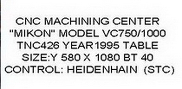 ขายเครื่อง CNC MACHINE CENTER : MIKON VC750/1000 สภาพพร้อมใช้งาน