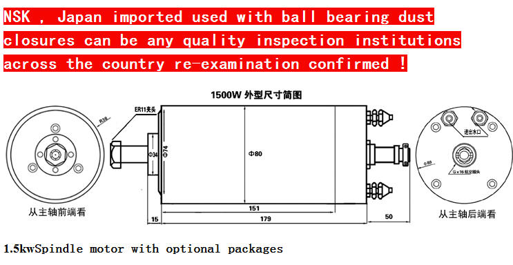 1.5KW, 24000RPM, AC220v, 1P, 6.8A NSK, ER11 (max 6.5mm)--- 12,000 บาท