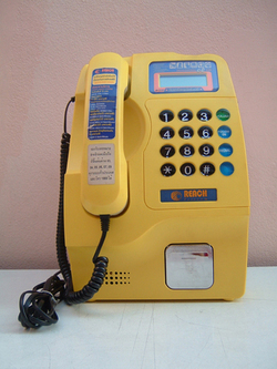 เครื่องโทรศัพท์สาธารณะหยอดเหรียญ 5, 10 บาท ยี่ห้อ REACH รุ่น R-318 สามารถโทรหมายเลขธรรมดา ระบบ 9 หลักได้ โทรมือถือได้ทั่วประเทศ โทรทางไกลได้ทั่วประเทศ มีระบบกินเหรียญอัตโนมัติ มีระบบป้องกันเหรียญปลอม และโทรฟรี เครื่องนี้สามารถนับจำนวนเงินได้ว่าอยู่ในกล่องเหรียญกี่เหรียญ สามารถตั้งจำนวนเหรียญในกล่องตามจำนวนที่ต้องการ และคุณสมบัติอื่นๆอีกมากมาย บรรยายไม่หมดครับ