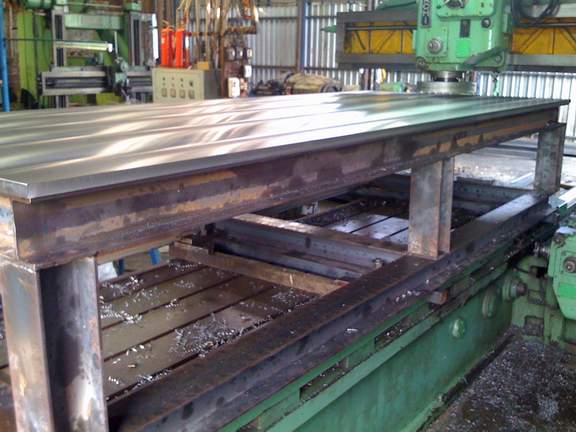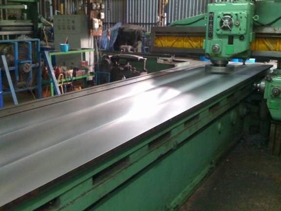 รับไสงานโลหะด้วยเครื่องไสนอน Planer (BUTLER England size 6100x1400x1250 mm.) (SWIFT England size 3000x1100x900 mm.)ไสขึ้นรูป ขึ้นร่อง ไสปาดหน้า ไสร่องลิ่มชิ้นงานขนาดใหญ่ งานตามแบบที่ลูกค้าต้องการ งานที่ต้องใช้ฝีมือ รับทำแม่พิมพ์พับโลหะ PUNCH และ V-DIE (ร่อง V) สำหรับใช้กับเครื่องพับโลหะ (Press Brake) ทุกขนาด รับปาดหน้างานโลหะด้วยเครื่องปาด Plano Miller (MARUFUKU Japan size 5000x1500x1250 mm.) งานปาดหน้าแท่นเครื่อง หน้าแท่นไฮโดรลิค โต๊ะแม่พิมพ์ แผ่นplate โต๊ะวัดชิ้นงาน โต๊ะระดับ รับกัดร่องทุกขนาดและกัดชิ้นงานตามแบบ รับเจียรไนงานโลหะขนาดใหญ่ด้วยเครื่อง เจียรราบ Surface Grinder (BUTLER England size 5000x1000x1100 mm.) (NICCO Japan โต๊ะแม่เหล็ก 1000x400 mm.) รับทำ finishing Plate ความยาวสูงสุด 3 เมตร กว้าง 1.5 เมตร รับเจียรใบมีดตัดโลหะด้วยเครื่องเจียรใบมีดตัดโลหะ Tool Grinder (YAMADA KOKI Japan โต๊ะแม่เหล็ก 3200x200 mm.) สำหรับใช้กับเครื่องตัดโลหะ (Shearing) รับกลึงงานโลหะทุกประเภทด้วยเครื่องกลึง Lathe (LANG England size 5500x600 mm. ปาดหน้าชิ้นงาน 1200 mm.) (LANG England size 1300x300 mm. ปาดหน้าชิ้นงาน 900 mm.) กลึงเหล็กแข็ง เหล็กหล่อ แมงกานีส สแตนเลส กลึงหน้าแปลน ท่อ ลูกรีด และอื่นๆ ดำเนินการโดยทีมช่างผู้ชำนาญงานมากว่า 40 ปี ผลงานที่ผ่านมาของทางบริษัท เช่น ผลิตชิ้นงานให้กับการรถไฟแห่งประเทศไทย กรมชลประทาน เป็นต้น สนใจติดต่อ บริษัท แหลมทอง เมทัลพาร์ท จำกัด โทร : 0-2754-1782 , 0-2754-1348 แฟกซ์ : 0-2754-1596 E-mail :