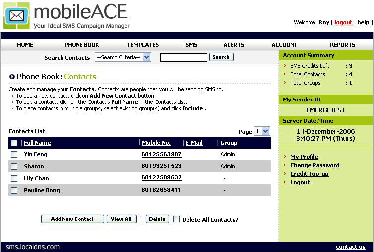 จำหน่าย โปรแกรมส่ง SMS Marketing : MobileACE! SMS Marketing Tool - Credit Top up