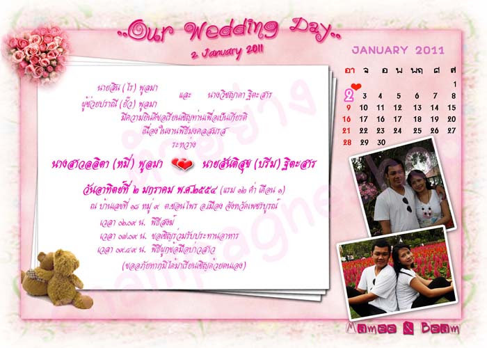 รับออกแบบการ์ดแต่งงาน การ์ดงานบวช การ์ดเลี้ยงรุ่น การ์ดMeeting แบบโปสการ์ด แบบรูปถ่าย เพียง 500 บาท/แบบเท่านั้น ท่านก็จะได้แบบการ์ดแต่งงานสวย ๆ และราคาประหยัด ออกแบบให้เลือกทั้งหมด 3 แบบท่านสามารถนำไปสั่งอัดแบบรูปถ่ายขนาดโปสการ์ด(4x6 นิ้ว)