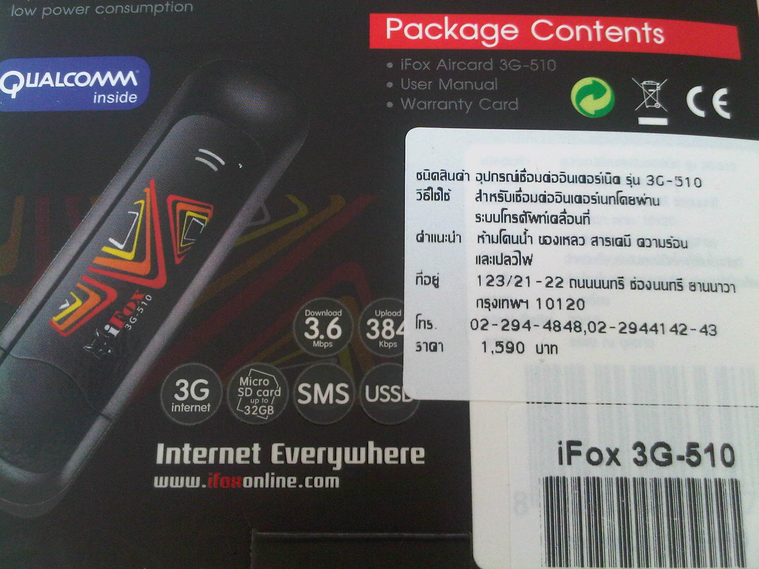ขาย Air Card 3G iFox 3G-510 ซื้อจาก Shop ของ True มี SIM แถมยังไม่ได้แกะใช้