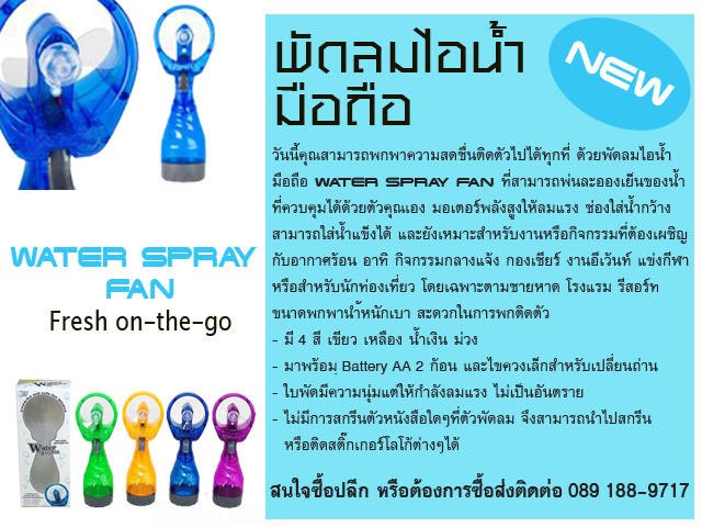 พัดลมไอน้ำมือถือ Water Spray Fan พัดลมมือถือ ขนาดพกพา น้ำหนักเบา สะดวกในการพกติดตัว ขายปลีก-ส่ง โทร 089-1889717