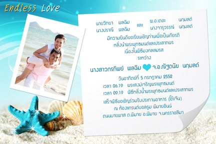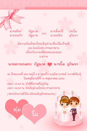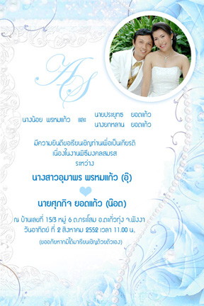 (งดให้ไฟล์การ์ดตัวจริงแก่ลูกค้า หากต้องการขอไฟล์เพื่อส่งอีเมลให้แขกในงาน ทางเราจะส่งไฟล์ขนาดเล็กสำหรับส่งอีเมลให้ค่ะ)