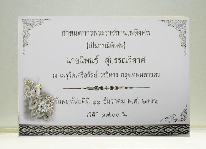 การ์ดงานบวช + การ์ดงานศพ + การ์ดขึ้นบ้านใหม่ (งานด่วน 2 วันได้ + รับสั่งตั้งแต่ 100 ใบขึ้นไปค่ะ)