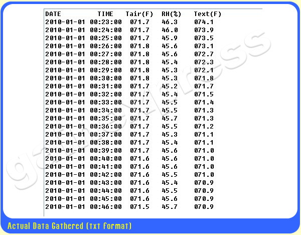เครื่องวัด และบันทึกความชื้นสัมพัทธ์ (RH) และอุณหภูมิในอากาศชนิดสมบูรณ์แบบในเครื่องเดียว วัด และบันทึกข้อมูลความชื้นสัมพัทธ์ (RH) และอุณหภูมิอากาศ (TA) โดยตรงลงใน SD memory การ์ด เมื่อข้อมูลเต็มก็เพียงเปลี่ยนการ์ดตัวใหม่ ทำให้บันทึกข้อมูลได้อย่างไม่จำกัด ชุดข้อมูลประกอบด้วยอุณหภูมิ, ความชื้นสัมพัทธ์, เวลา, วันที่ ข้อมูลรวบรวมเป็น text file สามารถอัพโหลด หรือแปะลงในโปรแกรม Excel ได้โดยตรง
