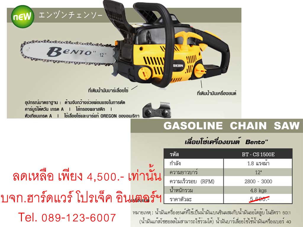 www.hpi.co.th ลดราคา เลื่อยโซ่เครื่องยนต์ BENTO BT-CS1500E จากราคา 5,600฿ เหลือ 4,500฿ เเละยังมีสินค้าอีกหลายรายการที่ลดราคาเเละรอให้คุณชมอยู่