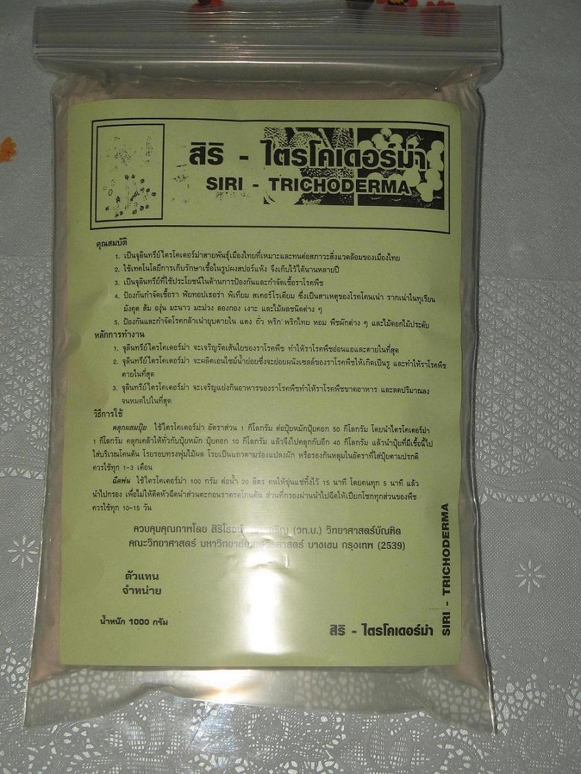 สิริ-ไตรโคเดอร์มา เป็นจุลินทรีย์ป้องกันการเกิดเชือรา โรคเน่า โคนเน่า ในพืช ใช้ได้ทั้งพืชผัก พืชไร่ พืชสวน ไม้ดอกไม้ประดับ ซึ่งมีส่วนผสมที่ทำให้ลำต้นของพืชแข็งแรง และเจริญเติบโต คุณสิริเป็นผู้ผลิต และตรวจสอบคุณภาพ ความเข้มข้น อัตราส่วนที่มีคุณภาพ ของจุลินทรีย์