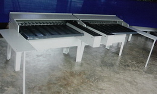 พิเศษ : สั่งได้ทั้งแบบรางด้านซ้าย และรางด้านขวา หรือ สั่งแบบรางซ้ายและรางขวาเพื่อทำงานเป็นคู่ สามารถทำงานได้เร็วเป็น 2 เท่าโดยใช้แรงงาน 3 คน ปกติ 1 เครื่องใช้แรงงาน 2 คน ทำให้ลดต้นทุนค่าแรงได้อีก 1 คน/วัน ทำให้มีกำไรที่เพิ่มขึ้น (ถ้าค่าแรงวันละ 200 ท่านก็จะมีกำไรเพิ่มอีกเดือนละ 6,000 บาท เลยทีเดียว จากการลดค่าแรงใช้งานปีเดียวก็ได้ค่าเครื่องคืนแล้ว)