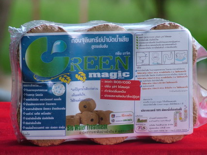 ก้อนจุลินทรีย์เข้มข้น GREEN MAGIC ผลิตภัณฑ์บำบัดน้ำเสีย ลดค่าBOD-COD , ปรับค่าpHในน้ำให้สมดุล , ย่อยสลายคราบไขมัน-กำจัดกลิ่นเหม็น ,ย่อยสลายกากของเสีย สิ่งปฏิกูลที่เป็นอินทรีย์วัตถุ , กำจัดของเสียก้นบ่อ , เพิ่มออกซิเจนในน้ำ-ลดแอมโมเนียในน้ำ