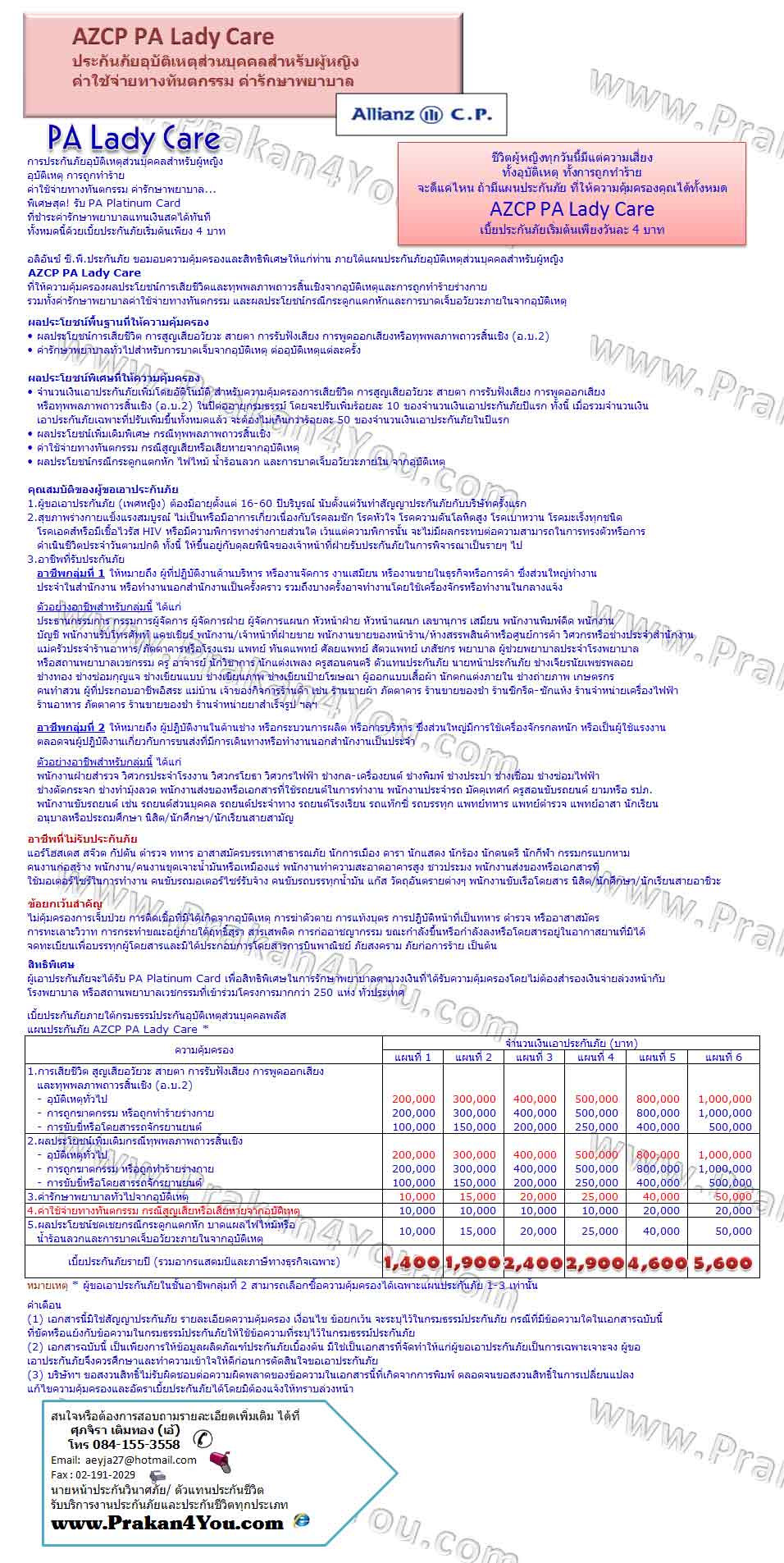 AZCP-PA Lady Care ประกันบัติเหตุสำหรับผู้หญิงโดยเฉพาะ คุ้มครองอุบัติเหตุ การถูกทำร้าย ทันตกรรม ค่ารักษาพยาบาล PA Platinum Card ชำระรักษาพยาบาลแทนเงินสดได้ทันที