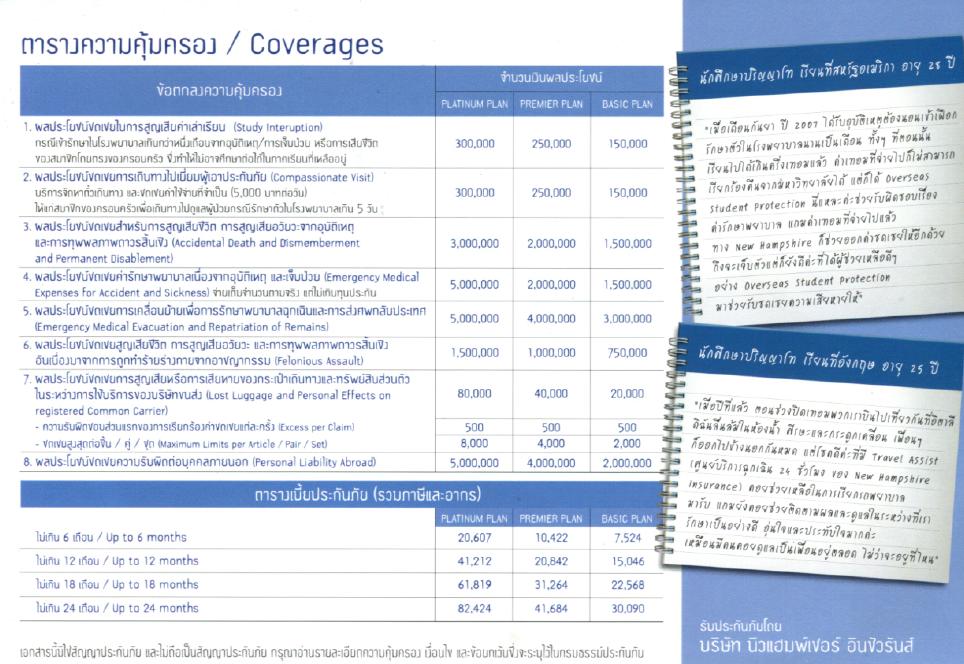 • คุ้มครองอุบัติเหตุและสุขภาพตลอด 24 ชั่วโมง ระหว่างที่ศึกษาและเดินทางอยู่ในต่างประเทศ.