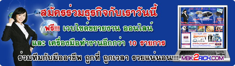 สมัครร่วมธุรกิจกับเราวันนี้ ฟรีเวบไชค์ขยายงาน ออนไลท์ และเครื่องมือทำงานอีกกว่า 10 รายการ โดยมี promotion พิเศษ สมัคร 3ดาว เพิ่มเป็น 5 ดาว โดยอัตโนมัติ ก่อน 31 พ.ค นี้เท่านั้น รีบด่วนมีเวลาเหลือน้อยนิดแล้ว....