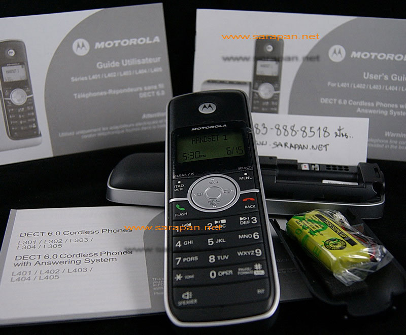 ใช้โทรศัพท์บ้านไร้สาย แล้วมีปัญหาคลื่นรบกวนกับ Wireless Lan ต้องนี่เลย Motorola L402 DECT 6.0 Cordless Phone โทรไร้สายคลื่นความถี่ใหม่ไม่กวนระบบ Wireless Lan ไม่ต้องเดินหาตามห้างครับ เพราะไม่มีขาย มีแต่ระบบเดิม 2.4 Gz