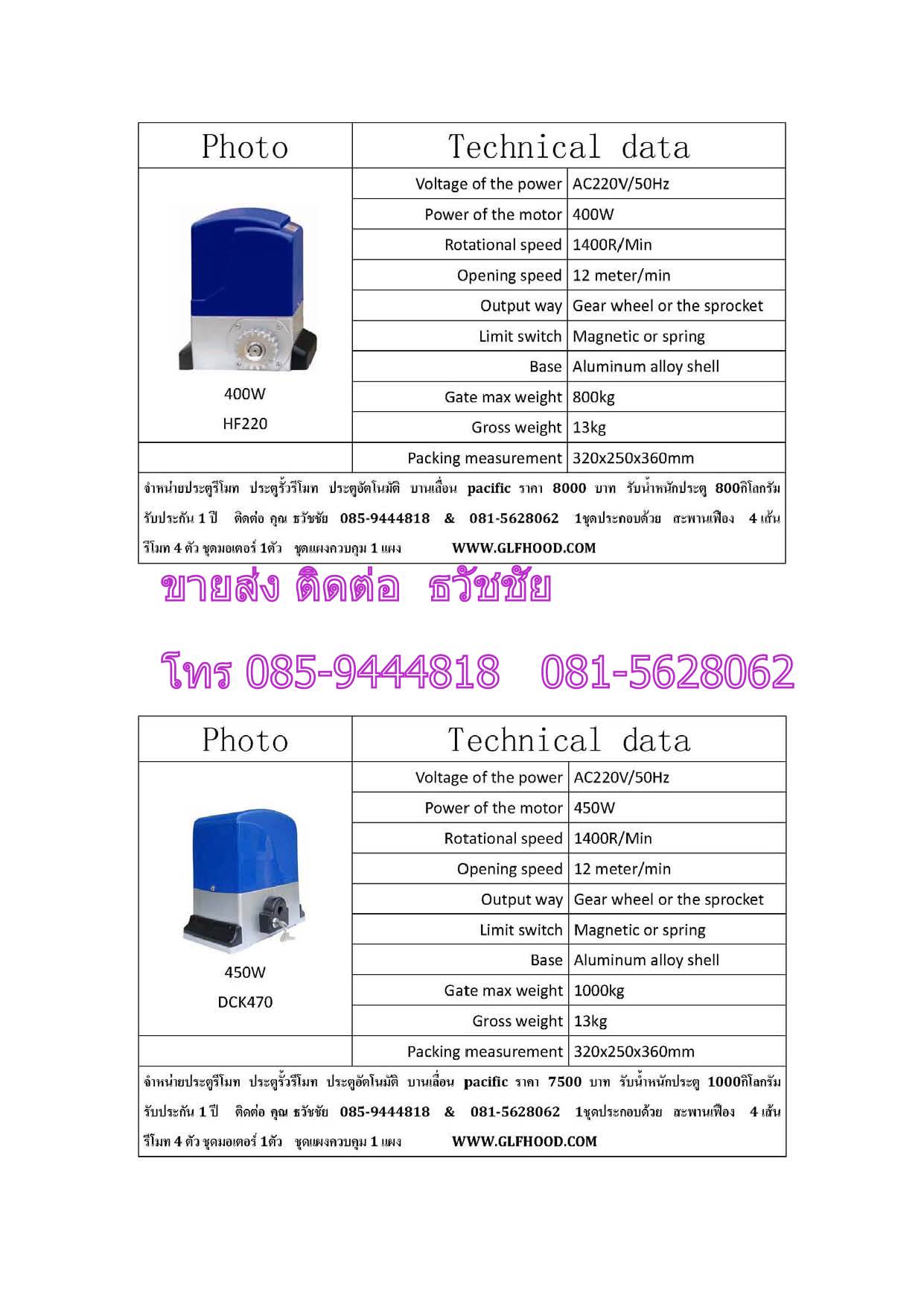 ^จำหน่ายประตูรีโมท ประตูรั้วรีโมท ประตูอัตโนมัติ บานเลื่อน PACIFIC DCK470Y ราคา 7,500 บาท รับน้ำหนักประตู 600-1000 กิโลกรัม รับประกัน 1 ปี