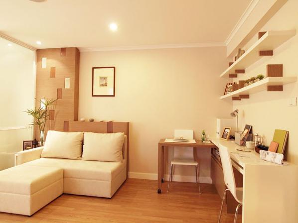 ห้องตกแต่งแล้วด้วยชุดแต่งของโครงการ รวมแอร์ 2 ตัว เพิ่มไฟ Dim light แล้ว ทำให้ห้องสว่างมากขึ้น