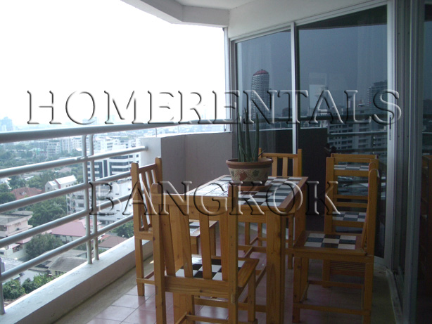 On the 15th floor, 121 sq.m. 3 bedrooms, 2 bathrooms, 5 air-con, kitchen and Living area, Fully furnished.