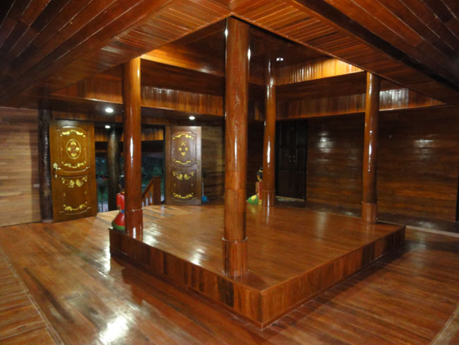 ตัวบ้านมีพื้นที่ทั้งหมด 500 ตร.ม. มี 2 ชั้น ชั้นบน จะปูพื้นด้วยไม้สักทั้งหมด มี 5 ห้อง ห้องนอนมีห้องน้ำในตัว จำนวน 2 ห้อง มาตรฐานจากยุโรป และมีตั่งที่ยกระดับขึ้นมาคล้าย ๆ ศาลา สำหรับพักผ่อนหรือทำกิจกรรมต่าง ๆ