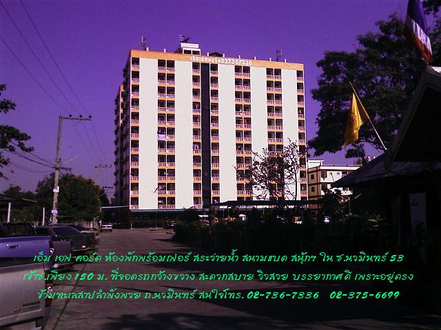 MF court ห้องพักให้เช่าราคาสบายกระเป๋าพร้อมเฟอร์ ลิฟต์ สระว่ายน้ำ สนามแบด wifi internet อาคารสูง วิวสวย บรรยากาศดี