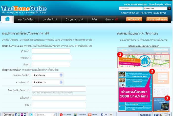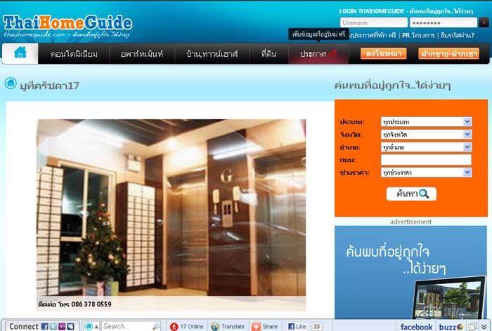 * เชื่อมโยงข้อมูลในเว็บ thaihomeguide.com เข้ากับ Facebook และ Twitter