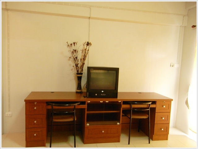 เฟอนิเจอร์ครบชุด โต๊ะทำงาน ตู้เสื้อผ้า เตียง แอร์ทุกห้อง เครื่องทำน้ำอุ่น โทรศัพท์