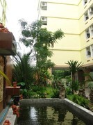 ที่พัก ที่เน้นธรรมชาติ+โลกเขียว ด้วยการจัดบรรยากาศให้ล้อมรอบตึกด้วยสวนสีเขียว ให้เหมือนบ้านจริงๆพร้อมบ่อปลา เพื่อช่วยลดสภาวะโลกร้อน
