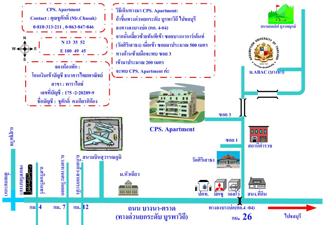 ให้เช่า..รายวัน - รายเดือน อพาร์ทเมนท์ใกล้ ม.ABAC 2 (ถ.บางนา-ตราด กม.26) สนามบินสุวรรณภูมิ ,ห้างสรรพสินค้า Home Pro , Lotus (บางพลี)