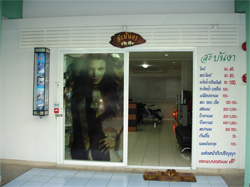 (ตอนนี้ในร้านไม่มีอุปกรณ์และเฟอร์นิเจอร์ มีแต่กระจกเงาบานใหญ่ หน้าร้านเกาะสติ๊กเกอร์และไฟหมุนออกแล้ว)