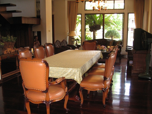 เฟอร์นิเจอร์ภายในไม้สักสไตล์หลุยล์ เนื้อที่ มีบ้านใหญ่สองชั้น 1 หลัง และบ้าน 1 ชั้นอีก 1 หลัง