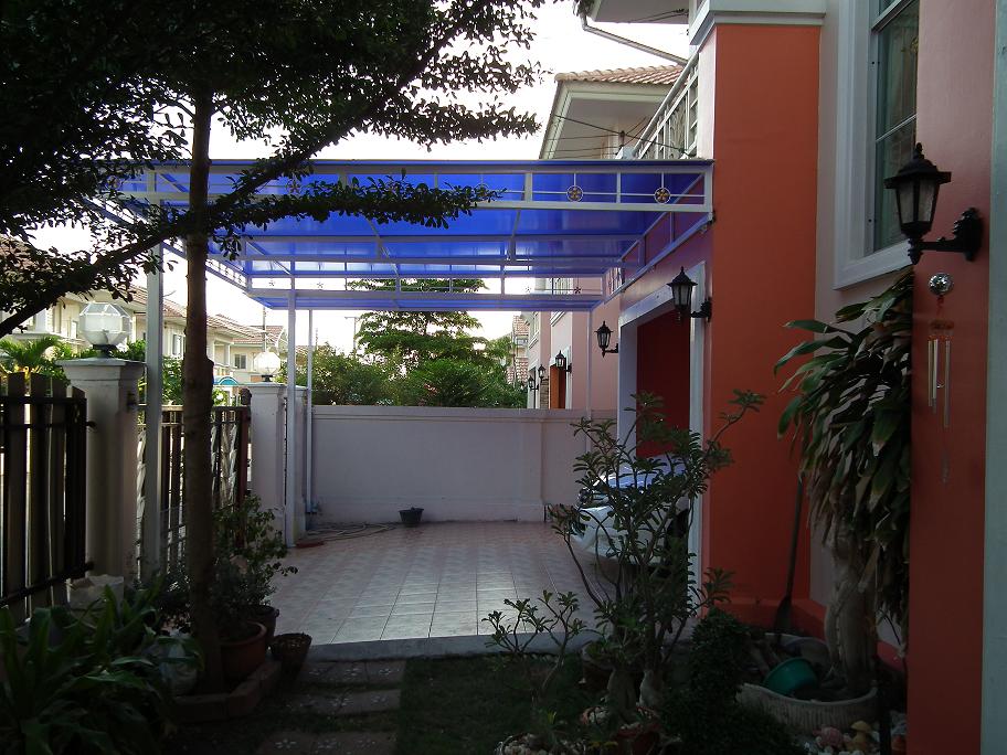 ต่อเติมครัวแล้ว โรงรถปูกระเบื้อง ขยายประตูกว้าง จอด รถ 2 คันสภาพสวยมาก พร้อมหลังคาโพลี ร่มรื่นมาก เย็นสบายไม่ร้อนเลยครับ