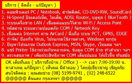 โดนใจ ซ่อมComputer ( แถว สีลม, สุขุมวิท, พัฒนาการ, รัชดาภิเษก, พหลโยธิน, พระราม9, วิภาวดีรังสิต, รามคำแหง, ทาวน์อินทาวน์ ) สนใจติดต่อ