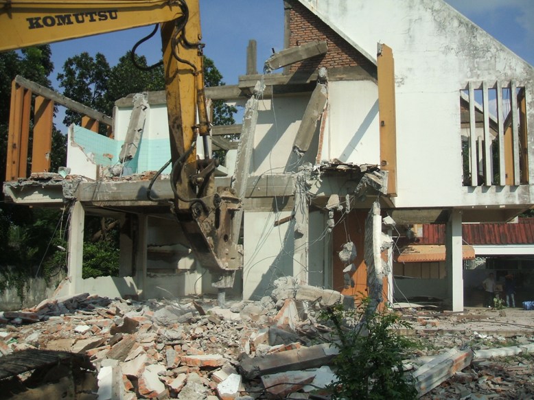 • ขุดฐานราก ปรับพื้นที่ ขนเศษวัสดุจากการรื้อถอน พร้อมที่จะก่อสร้างใหม่