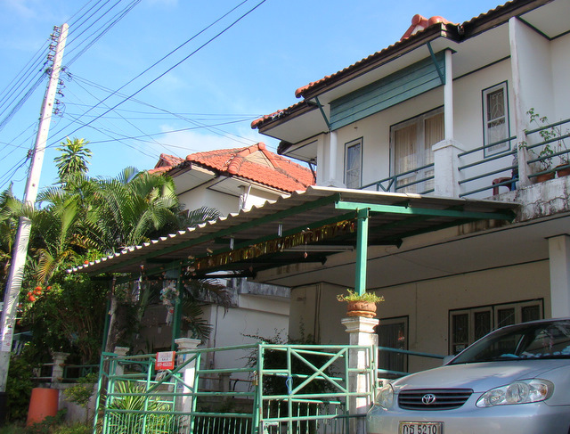 หมู่บ้านติดถนนใหญ่(สุขุมวิท) มีสโมสร สระว่ายน้ำ สภาพร่มรื่น ตัวบ้านต่อเติมครัว,เคาน์เตอร์ และ หลังคาโรงรถ ไว้เรียบร้อยแล้ว