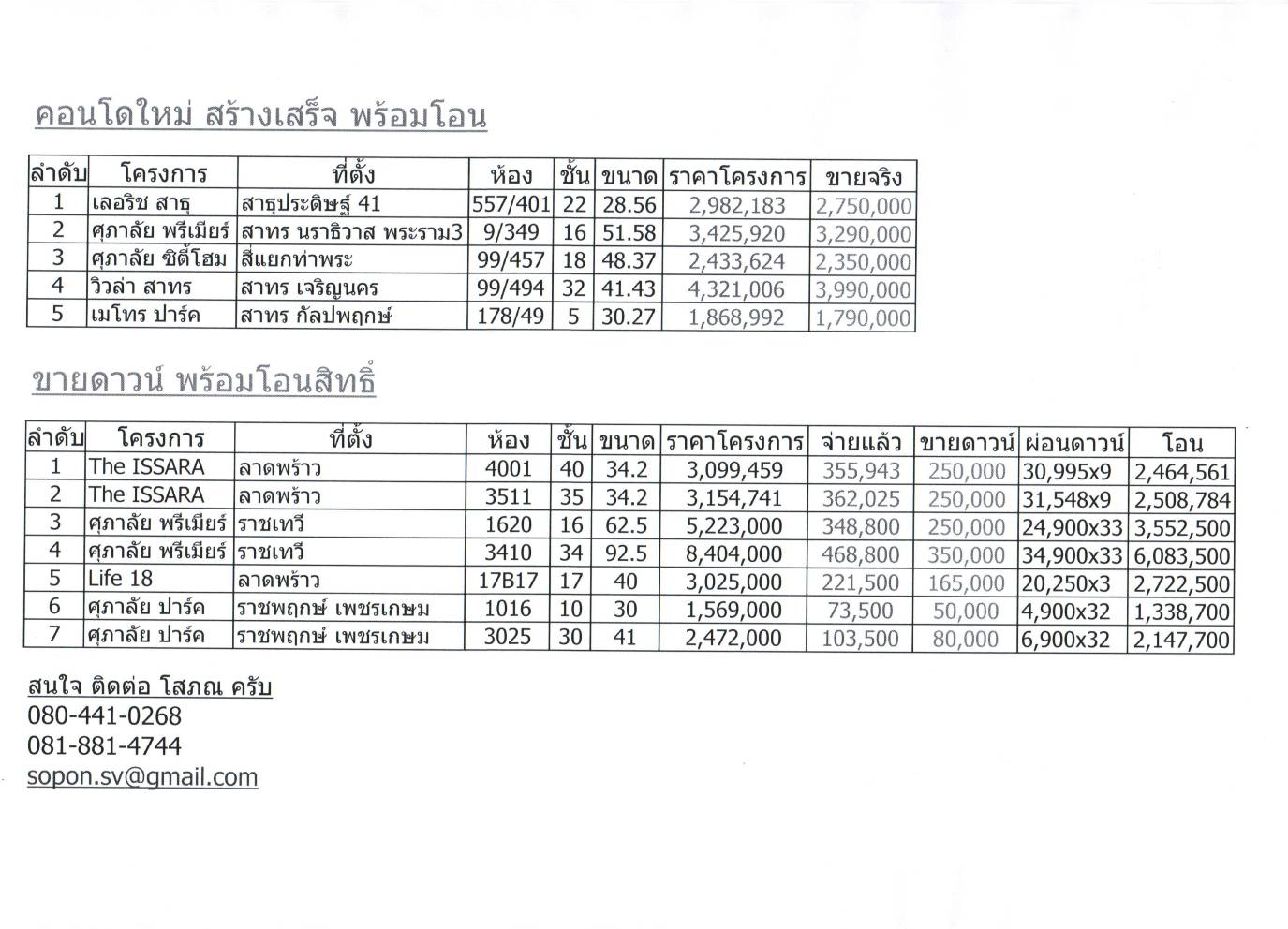 ขายคอนโด ห้องใหม่ ทำเลดี ราคาถูกๆ ลาดพร้าว สาทร สาธุ ราชเทวี เพชรเกษม