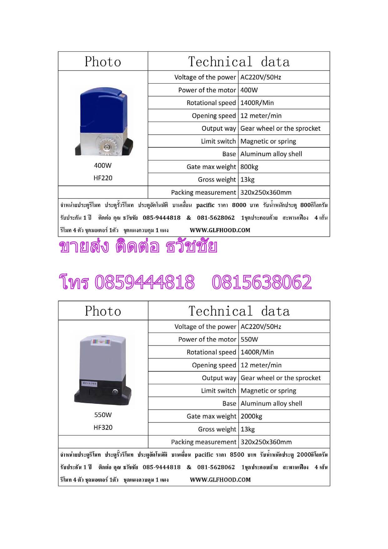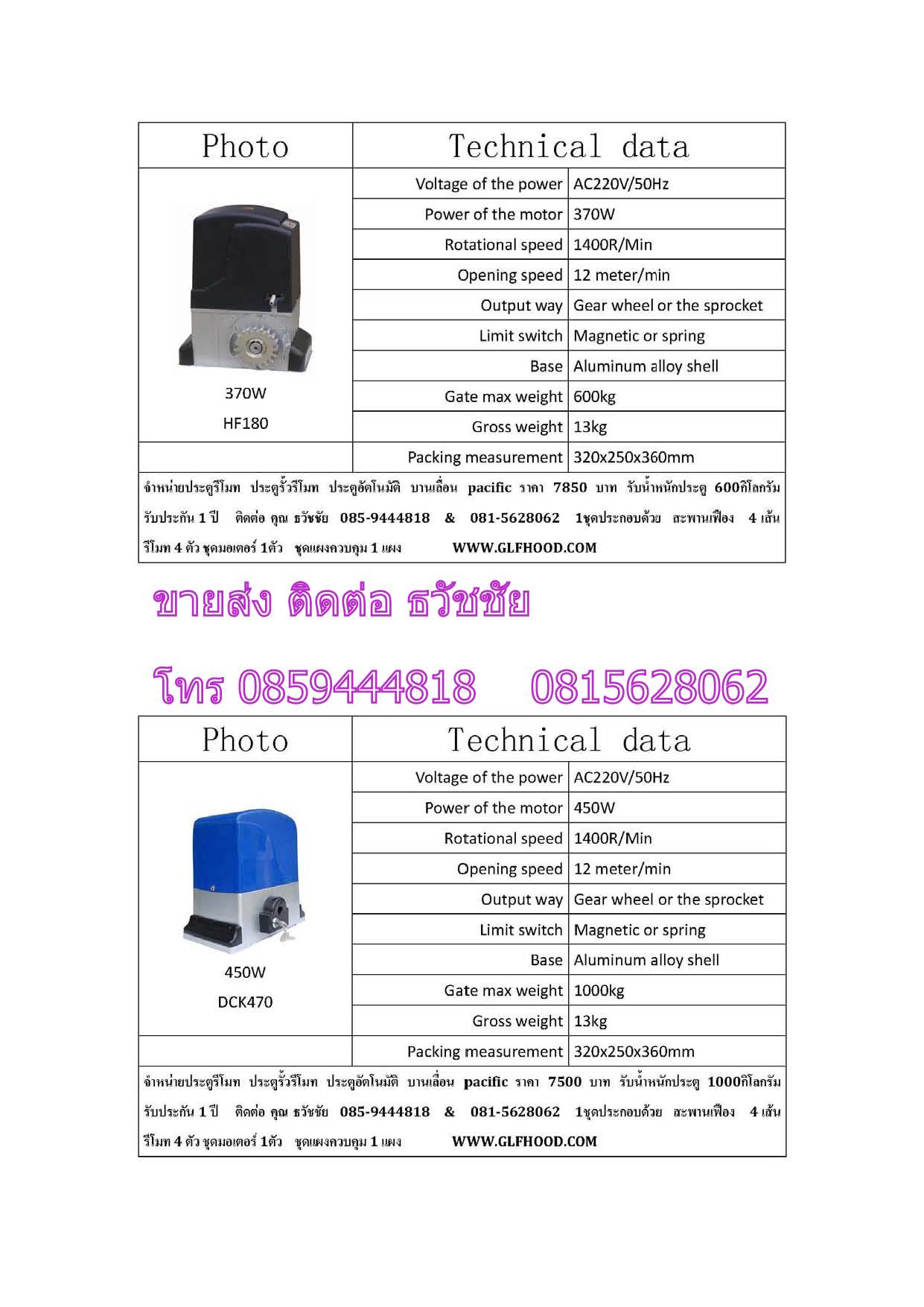 ราคา 7,500 บาท รับน้ำหนักประตู 600-1000 กิโลกรัม รับประกัน 1 ปี