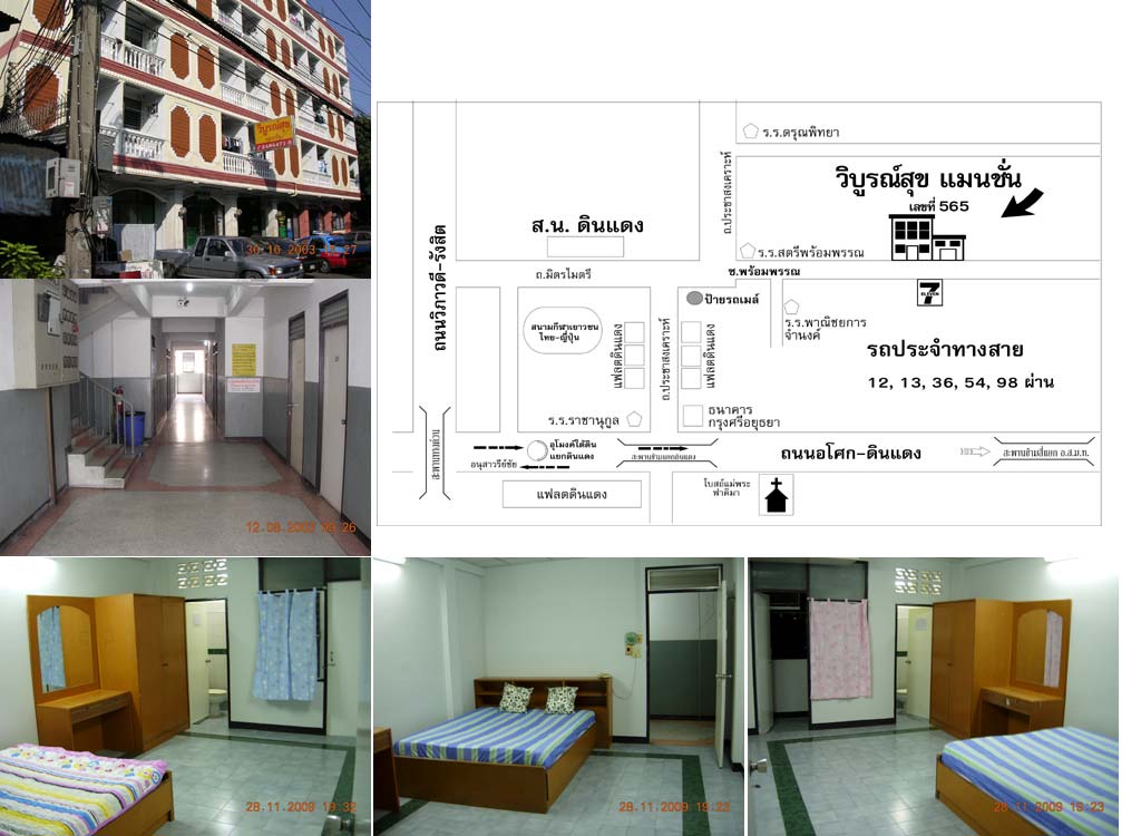 ห้องขนาด 26 ตรม. ห้องน้ำในตัว มีห้องแอร์ หรือพัดลมให้เลือก ใกล้อนุสาวรีย์ชัย, ประตูน้ำ, รัชดา, พระราม9 ห้องพักสะอาด มีระเบียงตากผ้า ไป-มาสะดวก รปภ. คีย์การ์ด กล้องวงจรปิด เฟอร์นิเจอร์ ตู้ เตียง โทรศัพท์อัตโนมัติ 24 ชม. มีบริการ INTERNET ตู้น้ำดื่ม-ซักผ้า หยอดเหรียญ ร้านซักรีด ร้านอาหาร ร้านทำผม ตู้ ATM ร้าน 7-ELEVEN อยู่ในซอยพร้อมพรรณ ถนนประชาสงเคราะห์14 เขตดินแดง กทม.
