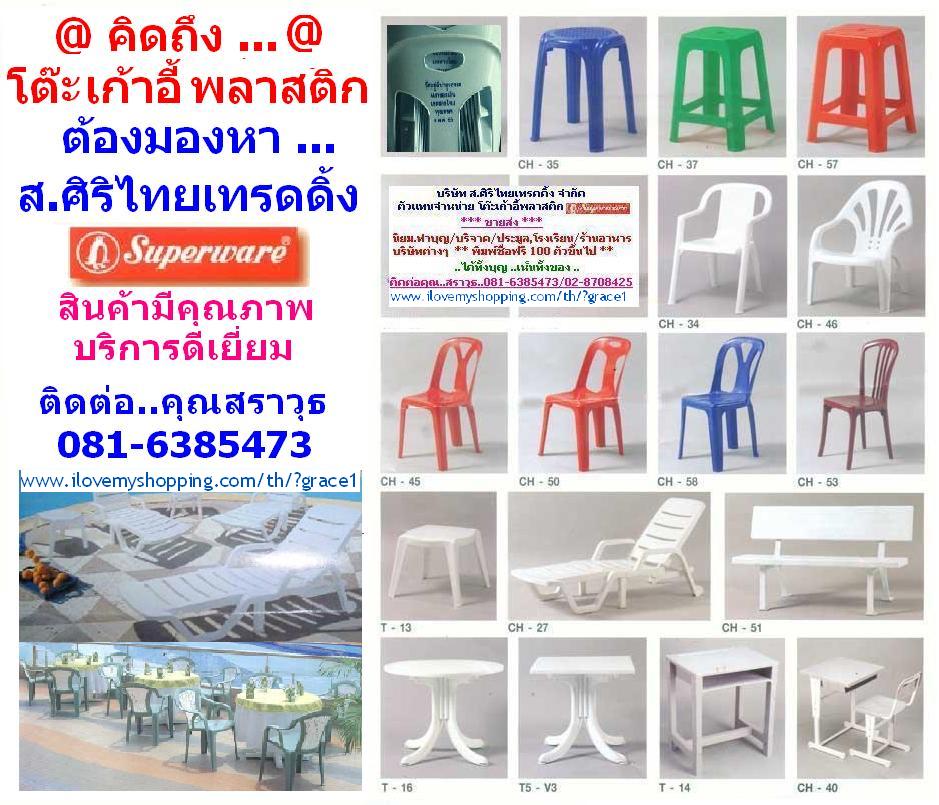 สั่งเก้าอี้ 100ตัวขึ้นไปพิมพ์ฟรี **เก้าอี้โต๊ะพลาสติกSuperware@(# ขายส่ง#)** นิยมทำบุญ/บริจาค/ประมูล,โรงเรียน/ร้านอาหาร/บริษัทต่างๆ ได้ทั้งบุญเห็นทั้งของ ติดต่อสราวุธ 081-638-5473ได้ที่ http://www.s-sirithaitrading.com